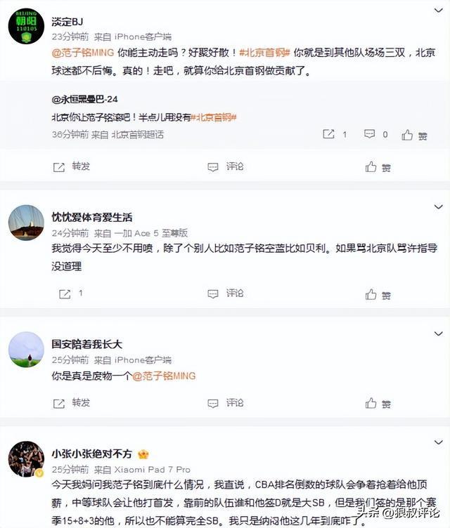 北京过去2个赛季都试图用范子铭去更换周琦,或者赵睿,但当时有北京媒体报道,范子铭个人意愿非常重要,按照顶薪的D类合同,也不可能说随便的裁掉,更何况,范子铭当初引进的时间段,有媒体报道花费超过3千万。